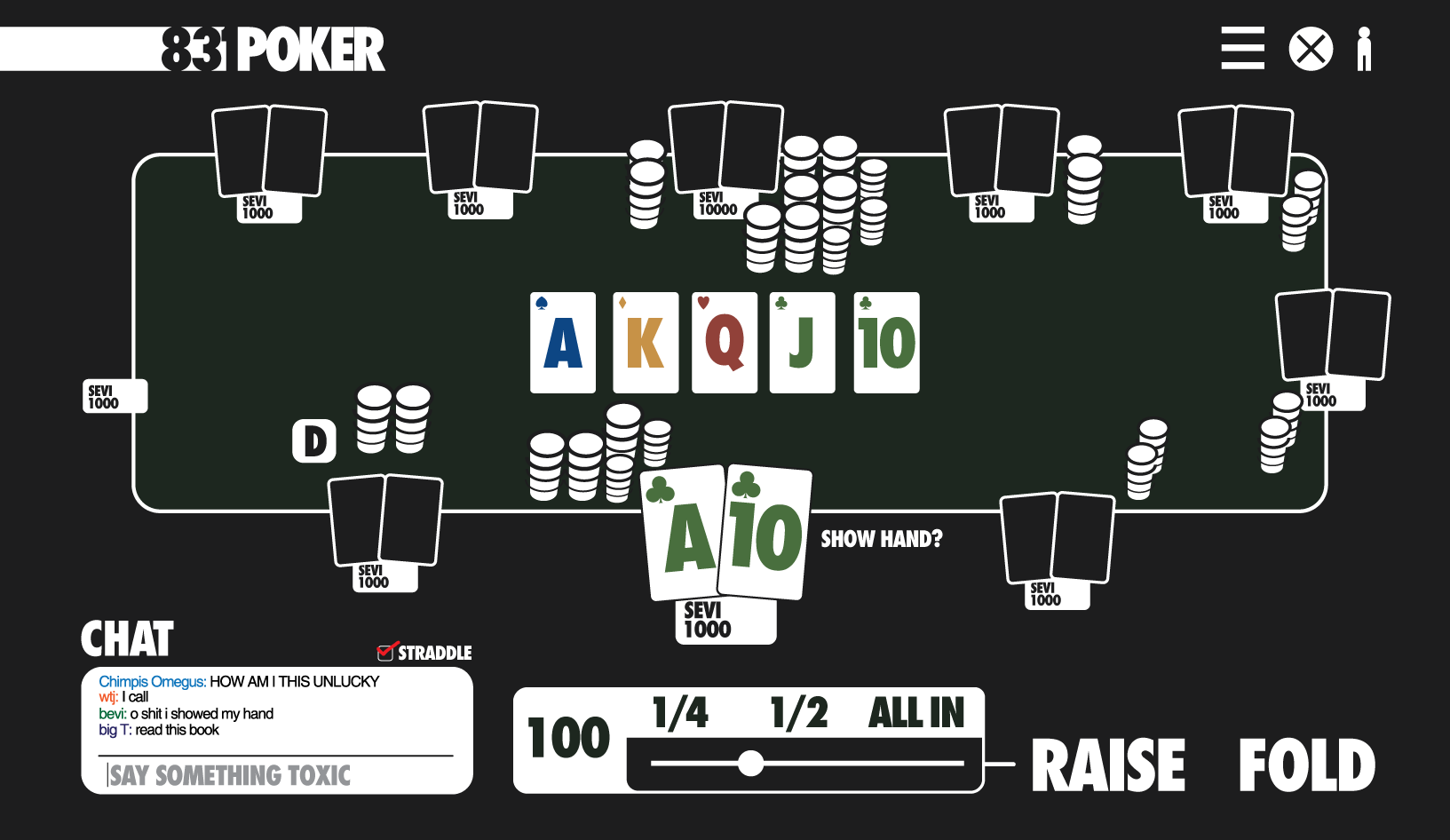 Updoot the code here: https://github.com/sevdeawesome/831poker
