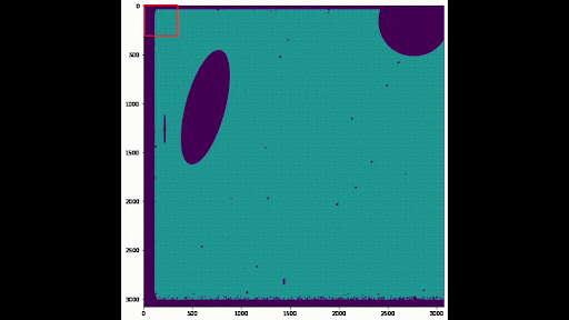 Figure 2. A gif I created showing the sliding window over a large image of space, where the network was able to spot asteroids.